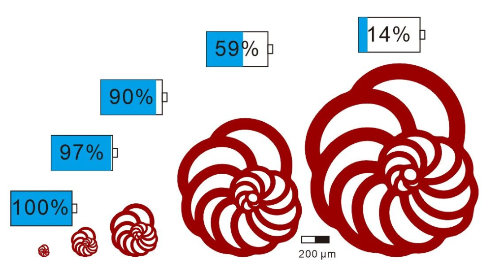 研究團隊發現,在海水氧含量較低的條件下,氧氣難以擴散到大型有孔蟲的細胞中心,這也解釋了為什么大型有孔蟲更容易滅絕。大型有孔蟲由于其較小的表面積與體積比,使得氧氣無法有效地擴散到細胞內部,導致在低氧或缺氧環境中更易滅絕。