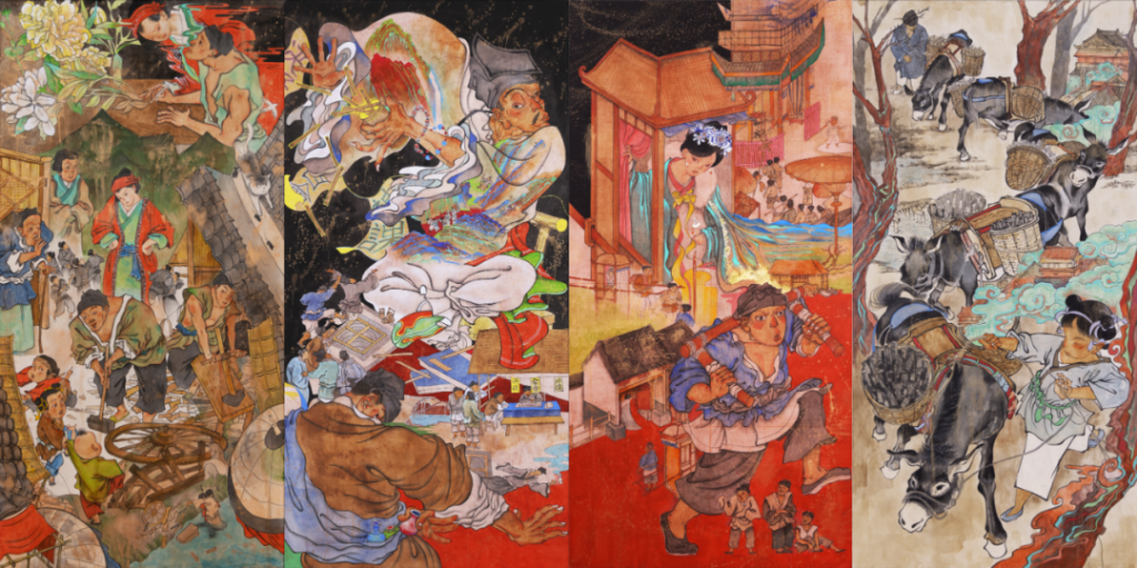 3分鐘講一個故事,仿佛古代的白話話本,沒有太華麗的語言,也沒有過于驚心動魄的跌宕情節,加上一支畫筆,一千多年前發生的故事就濃縮進了這一幅幅濃墨重彩的工筆重彩畫中。