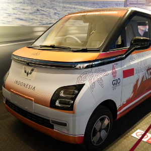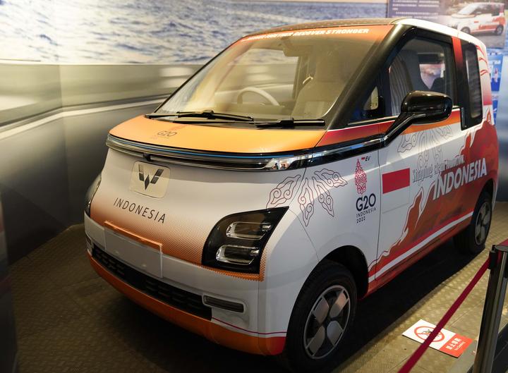 ↑ 2022年,五菱首款新能源全球車Air ev(右舵版)在印尼正式下線,并成為二十國集團(G20)領導人第十七次峰會官方用車。