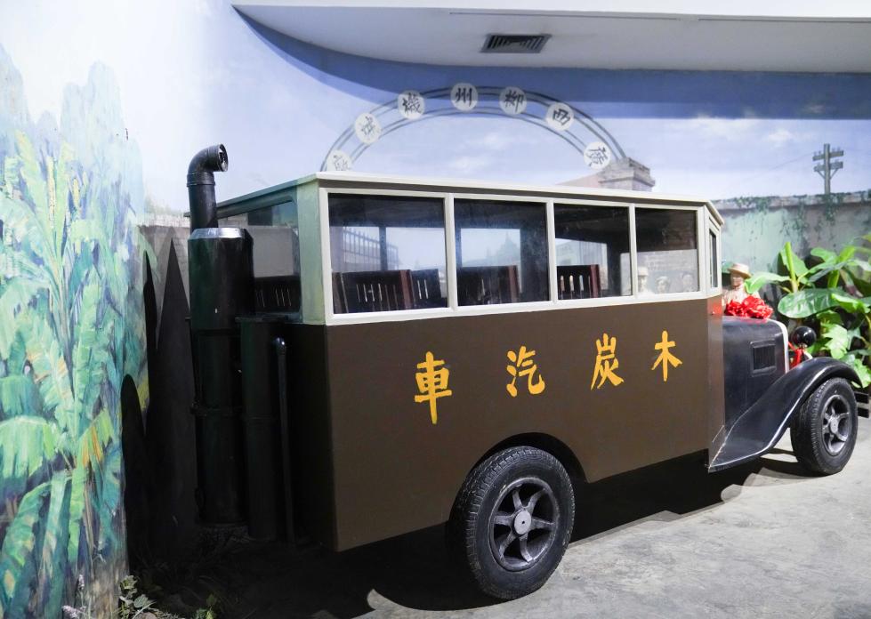 ↑ 1933年,柳州機械廠自主制成煤氣發生爐并改裝為木炭發動機,裝配出廣西第一臺以木炭為燃料的木炭汽車(模型)。