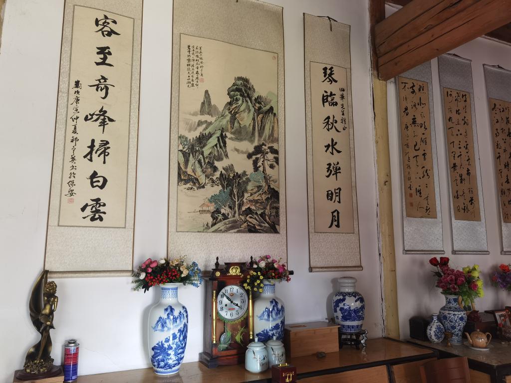 61歲土族退休教師田華的家,已有百年歷史。這所老宅完整保留了青海河湟地區農村莊廓院的傳統:四合院內四面靠墻建房,庭院中花木繁茂;正房內墻上掛有古訓字畫,條幾上置古瓶、鏡架和銅制供器,古色古香,頗有耕讀傳家遺風。