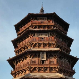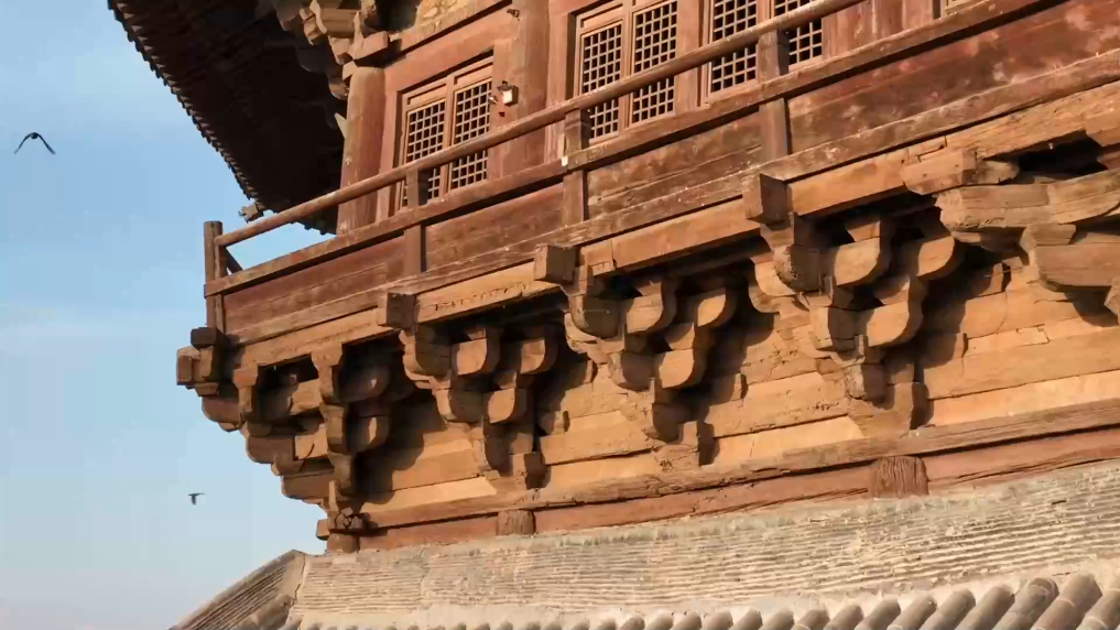 應縣木塔塔身呈八角形,外觀五層六檐,實為明五暗四九層塔。全塔上下有50余種斗拱裝點其中,木構件互相卯榫咬合,歷經近千年風雨仍巍然屹立。