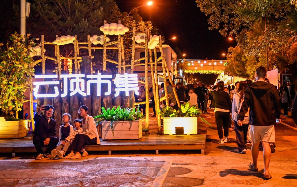 6月13日,游客在二道白河鎮的云頂市集游玩。新華社記者顏麟蘊 攝