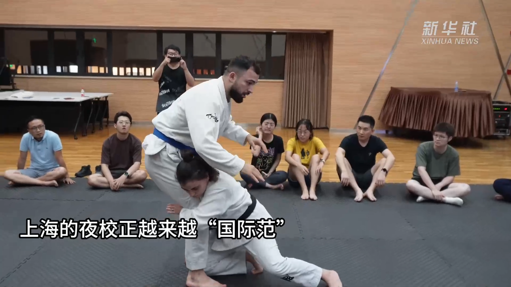 2024上海市民藝術夜校秋季班9月2日晚開學,全市300多個教學點開設上千門課程,下班上夜校成為白領的“夜生活”新風尚。今年的市民夜校還首次迎來“洋教練”,外籍教練安娜和阿曼帶領中國學生體驗巴西柔術。上海的夜校正越來越“國際范”。