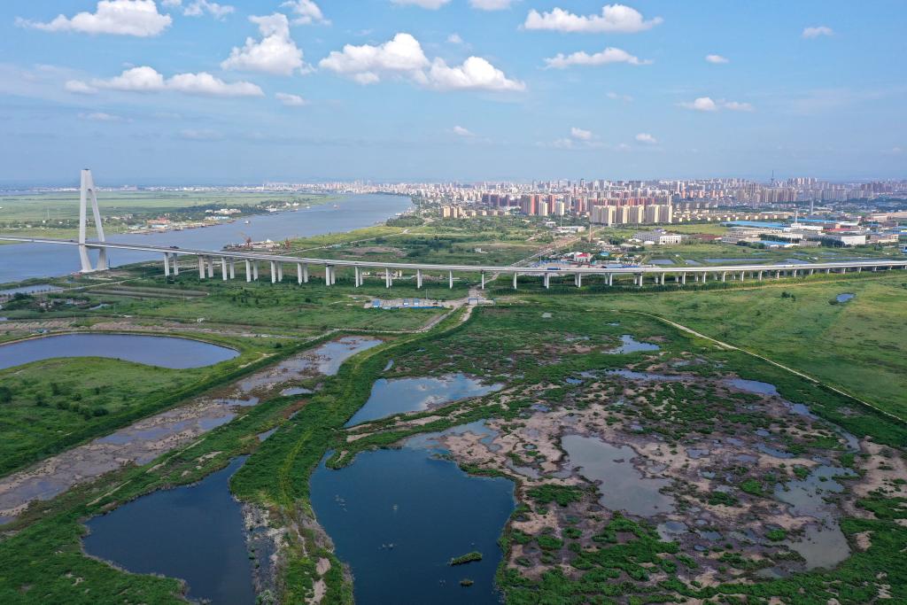 這是2024年8月14日拍攝的遼寧省營口市永遠角濕地。新華社記者 姚劍鋒 攝