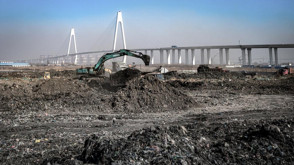這是2019年當地清理永遠角濕地里的垃圾山現場。新華社發(李國穎攝)