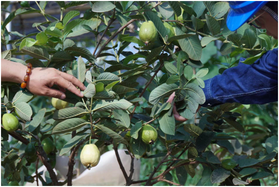 陜西省西安市高陵區通遠街辦灰堆坡村種植大棚內即將收獲的芭樂。新華社記者 劉彤 攝