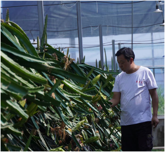 2018年,在外從事工程作業多年的王亮,萌生了將火龍果等熱帶、亞熱帶水果“北遷”試種的想法。在西安市高陵區農業農村和林業局的幫助下,他從引進智能化種植系統入手,開始了“南果北種”的嘗試?!盎瘕埞菬釒?,藤蔓對土壤、濕度、溫度等生長環境要求較高,夏季的抗高溫干旱和冬季的耐低溫防凍,是在北方種植火龍果必須解決的技術難題。在西北農林科技大學園藝學院專家的支持下,現在我不僅建起了育苗、果樹大棚,也掌握了火龍果一年多茬收獲的關鍵技術。8月上旬,我將今年的第一批果子售出后,便馬不停蹄對果苗進行整枝、施肥;過不了多久,第二批果子又將進入集中收獲期?!蓖趿琳f。