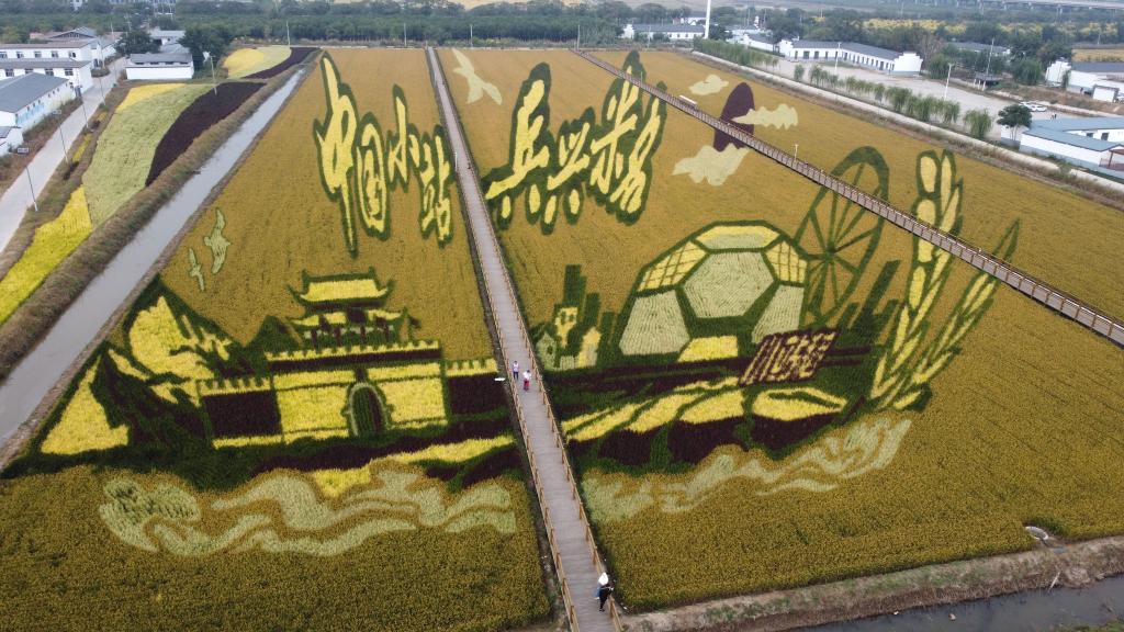 這是天津市津南區小站鎮會館村種植的稻田畫。新華社記者 趙子碩 攝