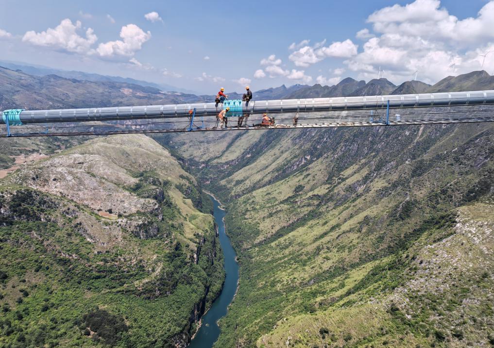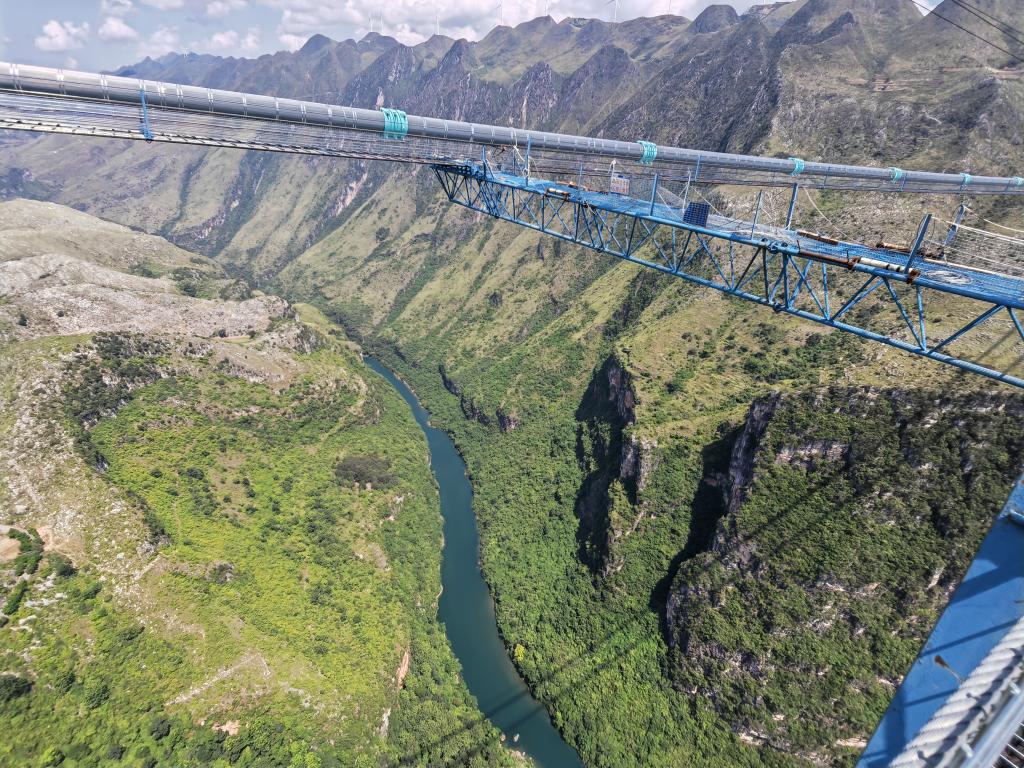 花江峽谷大橋的貓道一側。新華社記者向定杰 攝