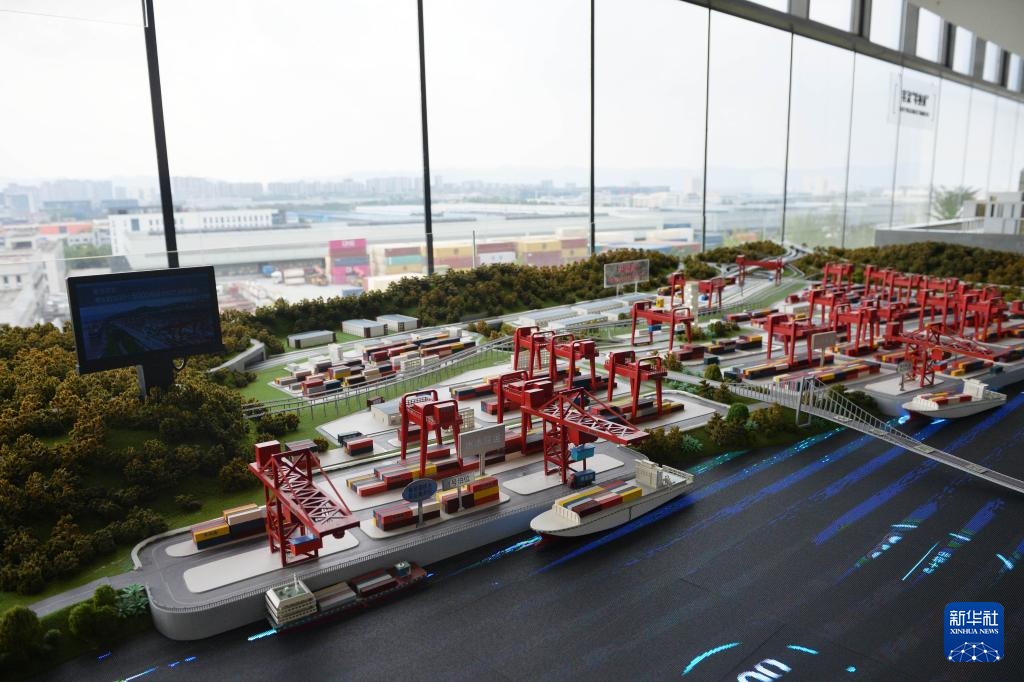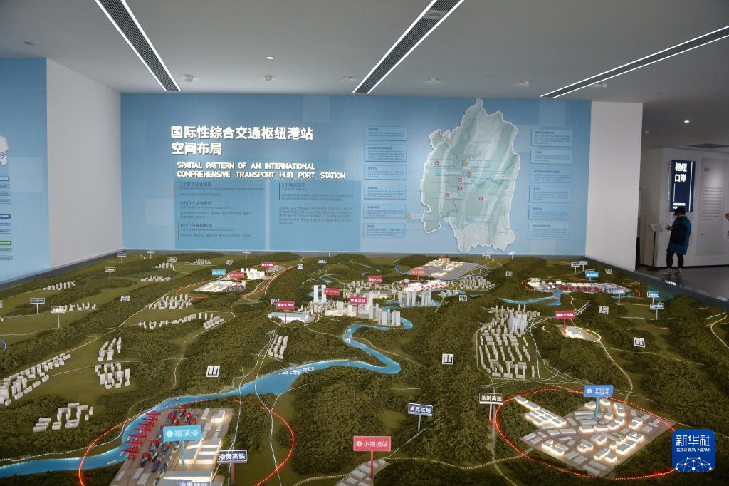 這是在重慶國際物流樞紐園區里的內陸國際物流樞紐展示中心拍攝的“果園港”模型(9月23日)。新華社記者 肖瀟 攝