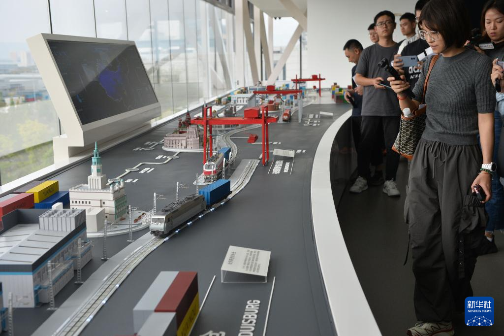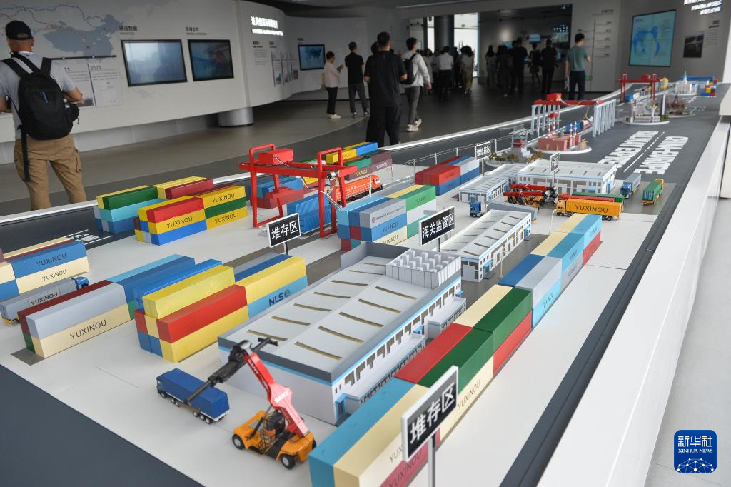 9月23日,觀眾在重慶國際物流樞紐園區里的內陸國際物流樞紐展示中心參觀。新華社記者 肖瀟 攝