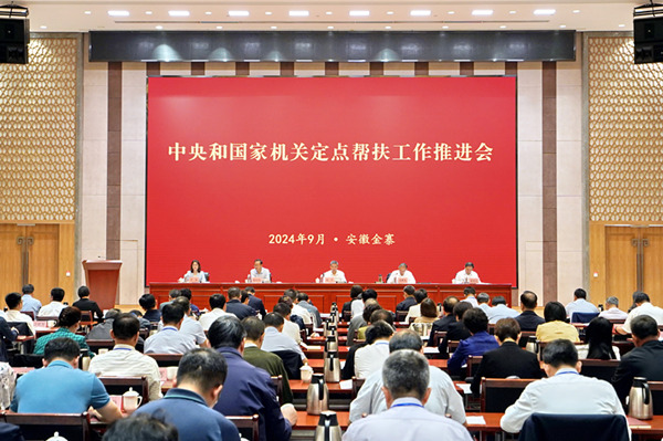 會議指出,中央和國家機關各部門堅持以習近平新時代中國特色社會主義思想為指導,深入學習貫徹黨的二十大和二十屆二中、三中全會精神,始終把定點幫扶工作作為重大政治任務抓緊抓實,助推脫貧攻堅成果進一步鞏固拓展、鄉村振興取得顯著成效。會議強調,要進一步提高政治站位,深刻認識定點幫扶工作面臨的新形勢新任務,自覺把思想和行動統一到黨的二十屆三中全會精神和習近平總書記重要指示精神上來,在學習宣傳貫徹三中全會精神上當好排頭兵,在進一步全面深化改革、推進中國式現代化上走在前、作示范。要進一步強化底線思維,運行好防返貧動態監測和幫扶機制,建立分層分類幫扶制度,確保不發生規模性返貧。要進一步發揮職能優勢,加大幫扶力度,整合幫扶資源力量,努力形成更多具有自身特色的改革成果,助力增強發展動能。要進一步著眼常態長效,積極探索完善幫扶機制,學習運用好“千萬工程”經驗,推動建立完善富民產業發展促進機制、農村基本公共服務保障機制等,持續推動定點幫扶工作走深走實。