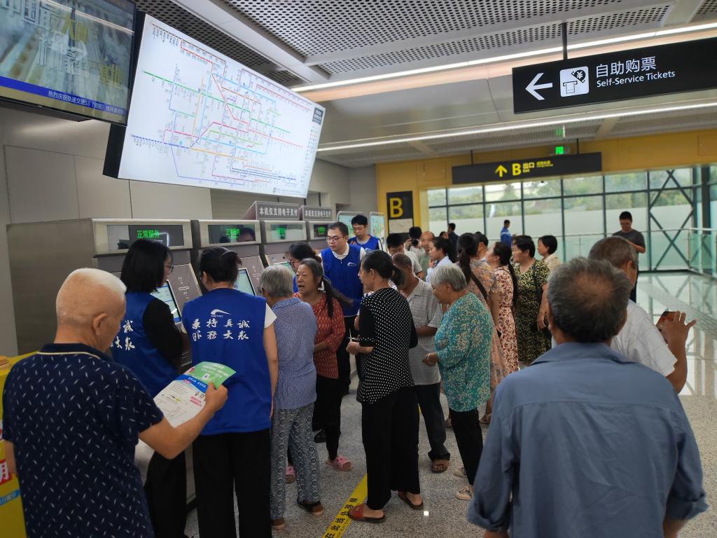 9月29日,在軌道交通資陽線臨空站,群眾正排隊購票,體驗坐車。新華社記者 張海磊 攝