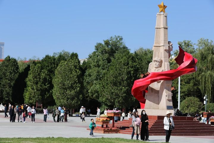 10月2日,游客在甘肅省白銀市會寧縣紅軍會寧會師舊址參觀。新華社發(王克賢 攝)