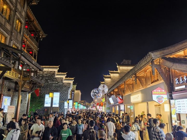 10月2日,湖南常德河街鴛鴦走馬樓前人潮涌動。新華社記者 程濟安 攝