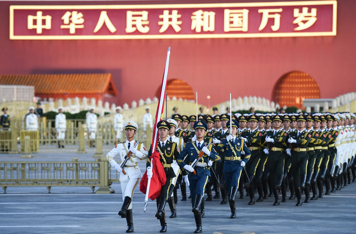 10月1日清晨,隆重的升國旗儀式在北京天安門廣場舉行,慶祝中華人民共和國成立75周年。新華社記者 陳鐘昊 攝