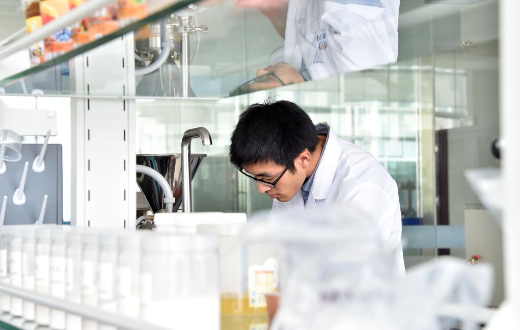一名工作人員在青島明月海藻集團的實驗室內工作。新華社記者 徐速繪 攝