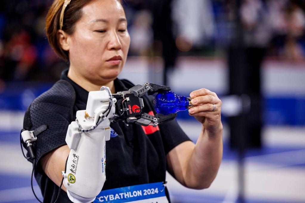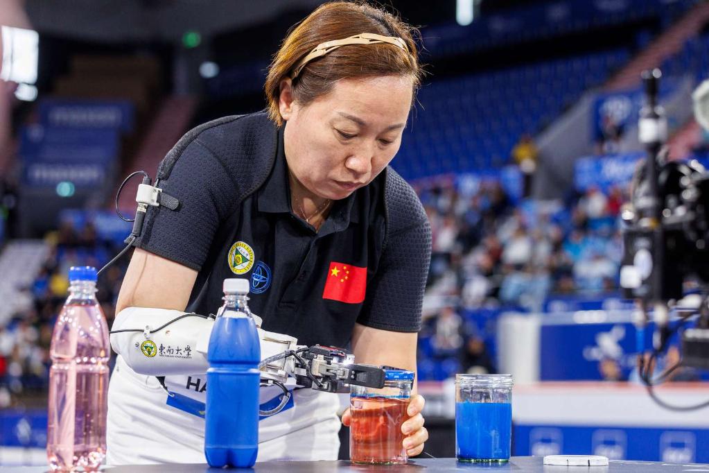 本屆總決賽共有來自26個國家的76支隊伍參加8個大項的角逐,其中“上肢義肢”組是競爭最為激烈的組別之一。參賽隊伍要一次性完成假肢提重物、雙臂協作、精細物體抓取、盲盒抓取等10個假肢操作任務,以任務完成數量和完成時間判定成績。中國選手操作的義肢如同“智能手”一般,僅用8分鐘精準完成了數十個動作要求,贏得現場觀眾的連連喝彩。