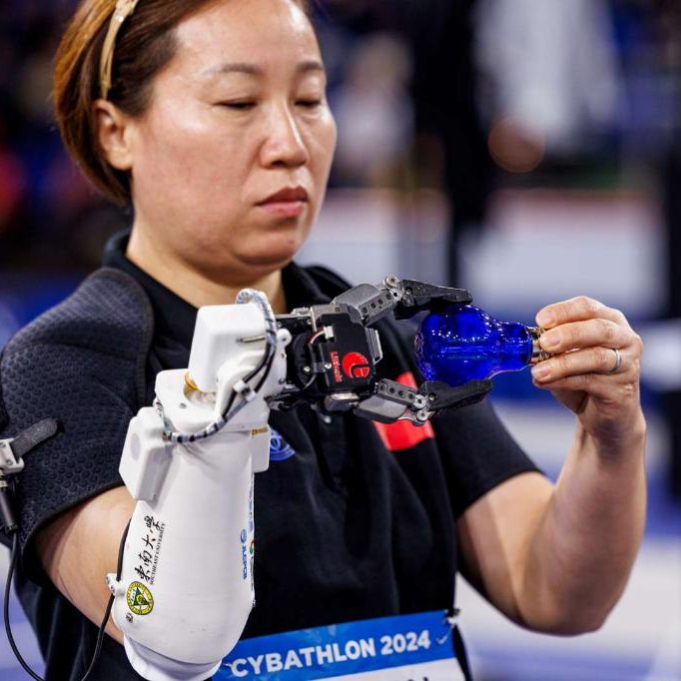 新華社南京11月5日電(記者柯高陽)提重物、抓紙片、擰燈泡、摞杯子、繞鐵環……10月26日,在瑞士蘇黎世舉行的第三屆“全球輔助技術奧運會”(又稱“半機械人仿生奧運會”)上,中國選手徐敏用義肢快速完成各項動作,奪得本屆大賽“上肢義肢”組冠軍,同時刷新我國在全球頂級科技助殘賽事中創造的最好成績。