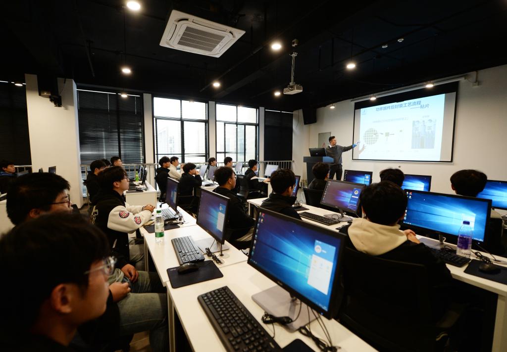 11月10日,在安徽池州人力資源服務產業園,園區半導體企業技術人員給當地高校學生講解半導體產業相關知識。新華社記者 劉勇貞 攝