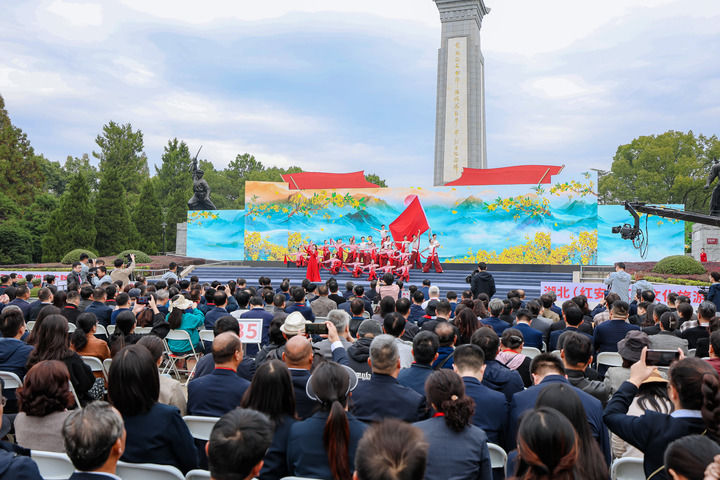 時值深秋,漫山盡染,位于湖北東北部、大別山南麓的紅安縣黃麻起義和鄂豫皖蘇區紀念園里,松柏蒼翠,紅旗飄揚,紀念碑巍然矗立,眾人深情凝視,莊嚴而肅穆……