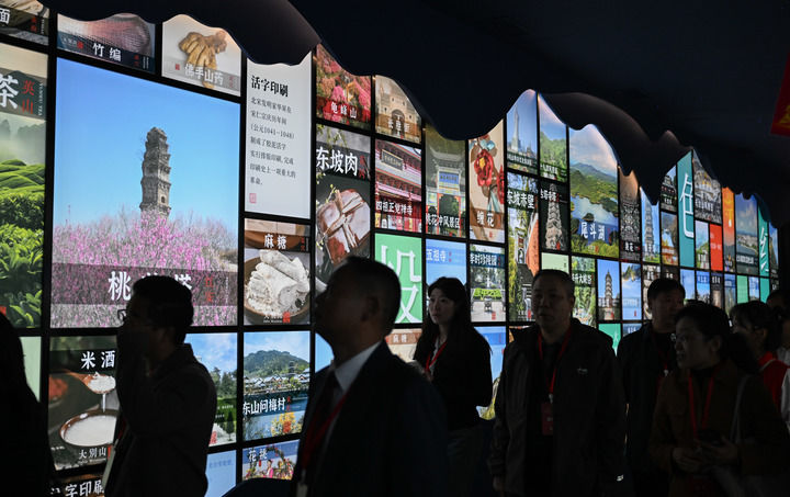 這是二〇二四中國紅色旅游推廣聯盟年會暨湖北(紅安)紅色文化旅游季活動中,“紅安永遠紅”紅色文創展現場。新華社記者程敏攝