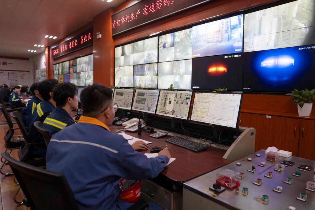 11月12日,在煉鋼廠煉鋼作業區,工作人員在操作智能化煉鋼系統。