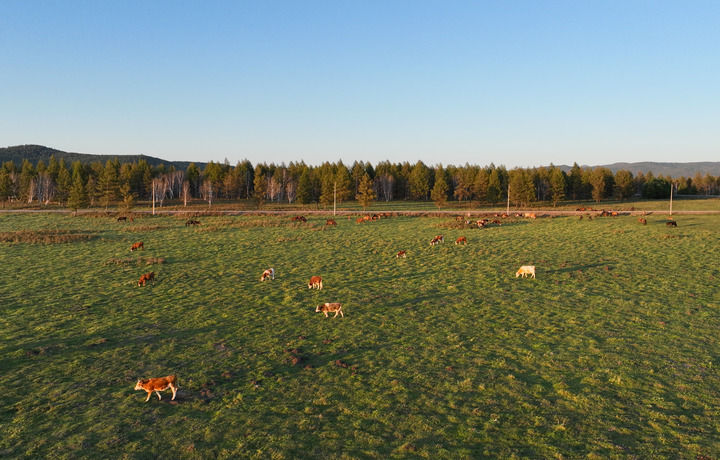 9月7日拍攝的阿爾山國家森林公園內的牛群(無人機照片)。新華社記者 貝赫 攝
