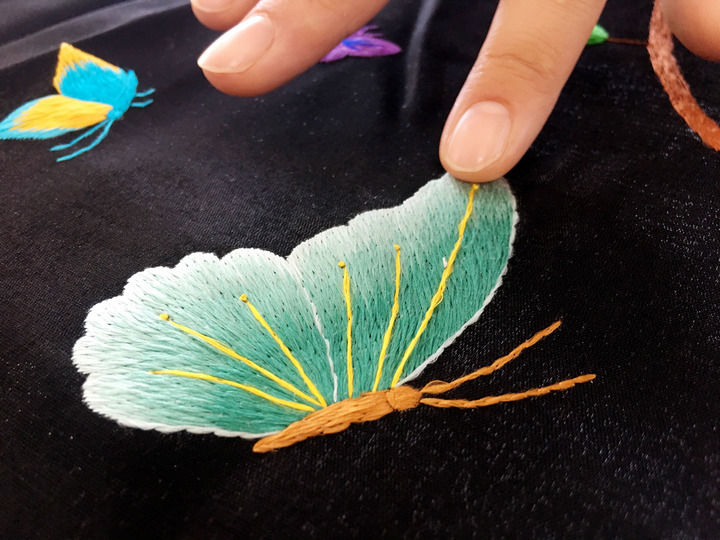 這是內蒙古興安盟科爾沁右翼中旗農牧民繡出的蝴蝶。記者王靖 攝