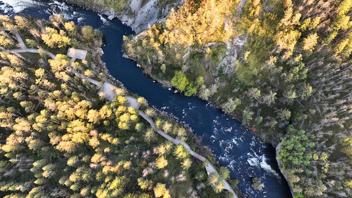 9月7日拍攝的阿爾山國家森林公園內的三潭峽(無人機照片)。新華社記者 貝赫 攝