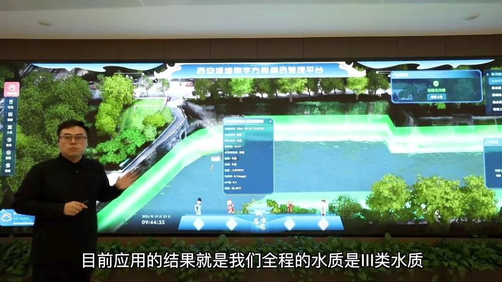 護城河是西安城墻外圍環城一周的人工防護河,河寬20米,深8米,是西安城墻重要的文化遺存之一。保持水質清潔也成為西安城墻景區保護工作的重要內容。工作人員告訴記者,相比于人工作業,這艘無人駕駛的智能小船不僅清潔效率高,更重要的是,它還承擔著護城河水質監測的重任。得益于先進的傳感技術,小船通過智能監測,將采集的水質數據第一時間傳輸到西安城墻數字方艙綜合管理平臺。
