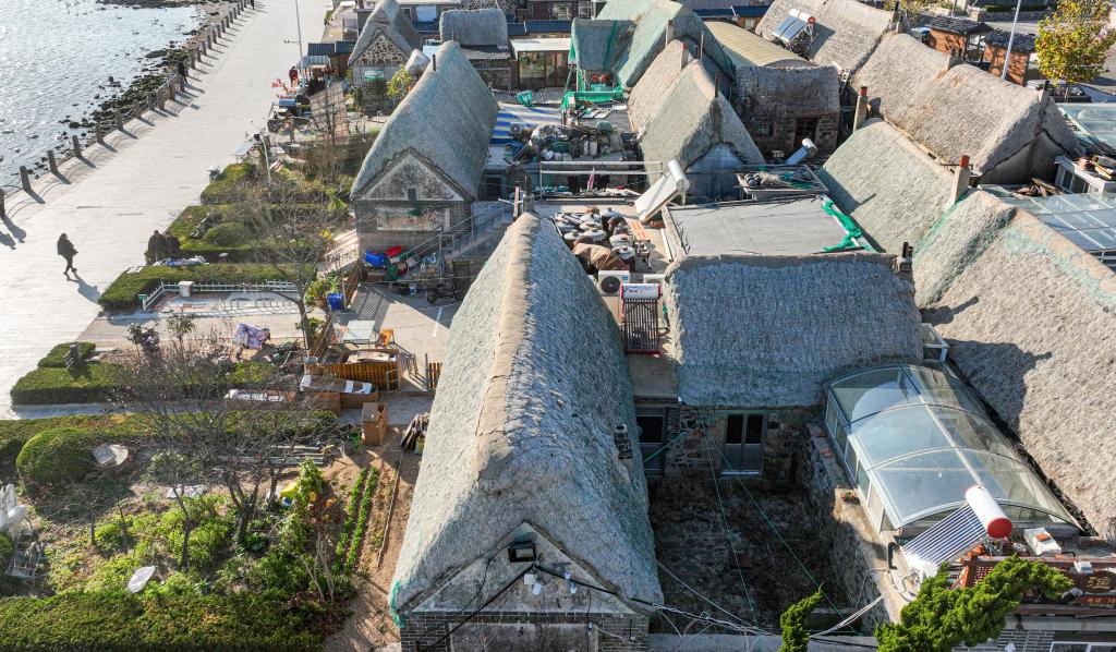 這是山東省榮成市俚島鎮煙墩角村海草房民居(無人機照片)。新華社發(李信君 攝)
