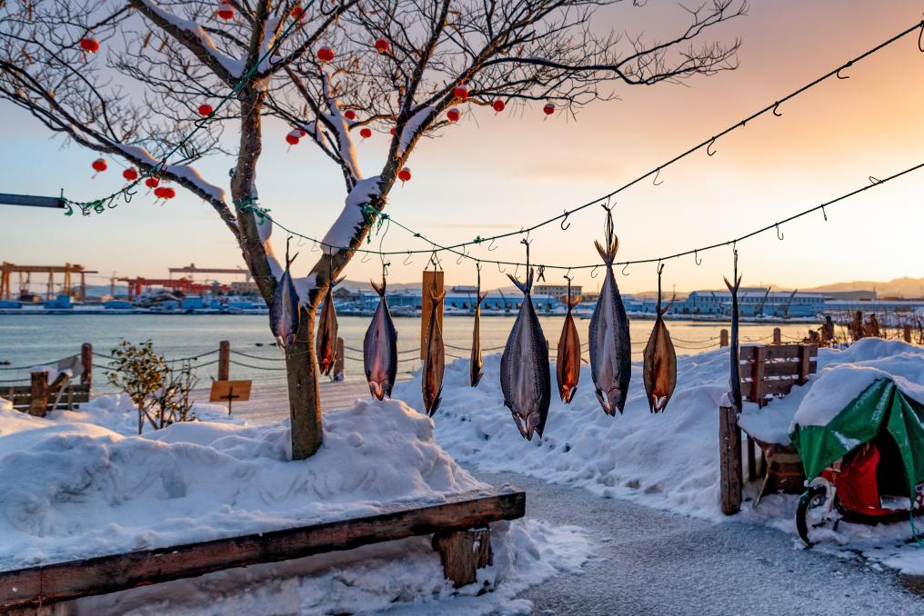 在山東省榮成市俚島鎮煙墩角村,一戶漁家樂門口晾曬的鲅魚干。新華社發(李信君 攝)