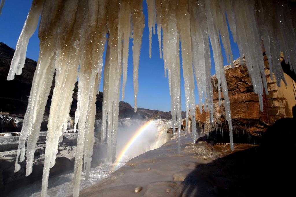 12月14日,黃河壺口瀑布出現冰掛美景。(呂桂明 攝)