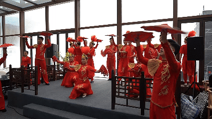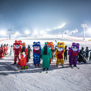 20名身著京劇、川劇等服飾的滑雪愛好者