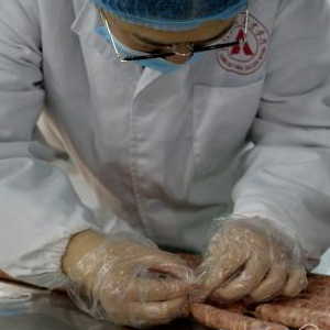 12月27日,老師帶領學生在位于河南漯河的中原食品實驗室的灌腸打卡區實習。新華社記者 劉力航 攝