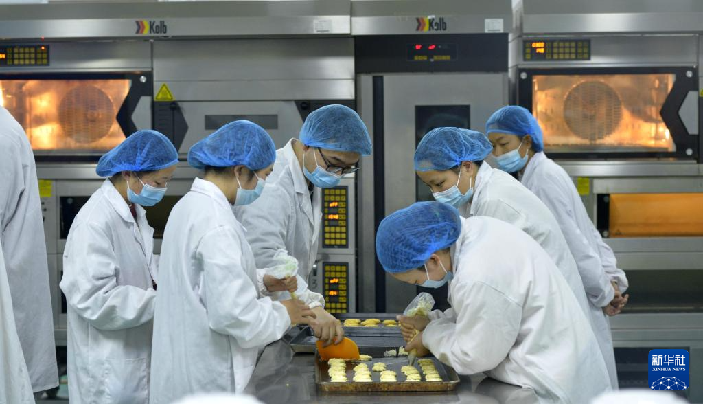 12月27日,老師帶領學生在位于河南漯河的中原食品實驗室烘焙休閑食品中試生產線上實習。新華社記者 劉力航 攝