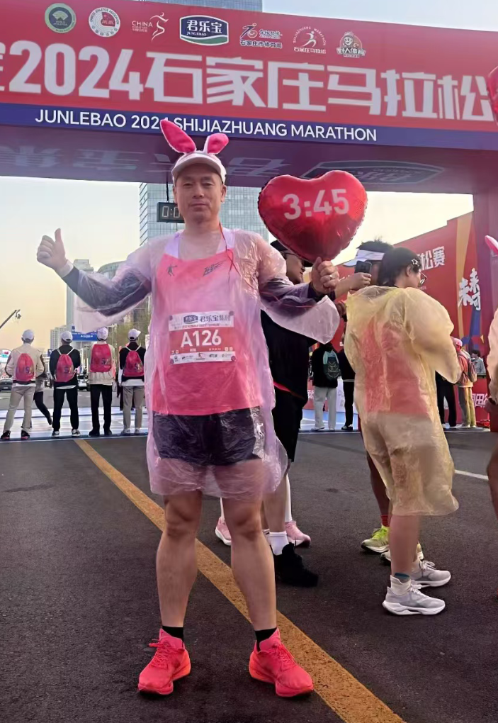 2024年3月,何磊在石家莊馬拉松中擔任“官兔”。受訪人供圖