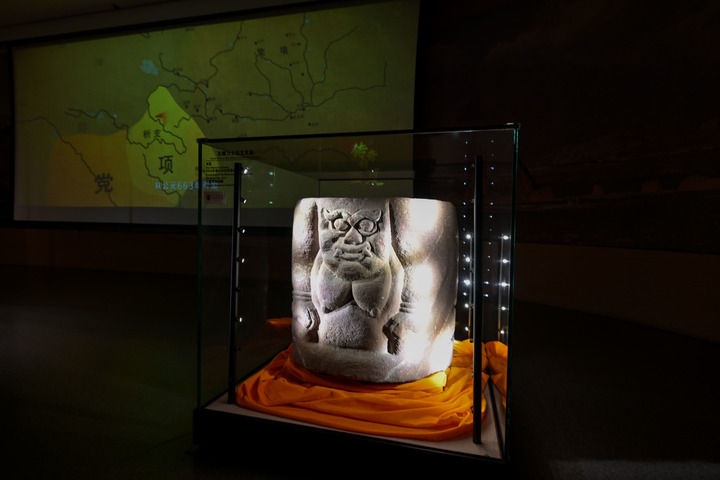 這是在寧夏博物館展出的石雕力士志文支座(2024年11月26日攝)。新華社記者 馮開華 攝