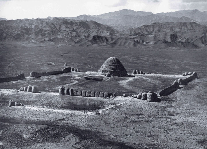 這是20世紀三十年代,德國飛行員卡斯特飛越寧夏賀蘭山時拍攝的西夏帝陵3號陵(資料照片)。新華社發