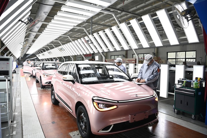 湖北襄陽東風汽車納米科技(襄陽)有限公司總裝車間,一輛輛新能源汽車陸續下線。謝勇 攝