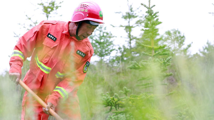 定西市安定區鳳翔鎮李家岔村的護林員李鋒在為生態林的草木松土。新華每日電訊記者郭剛攝