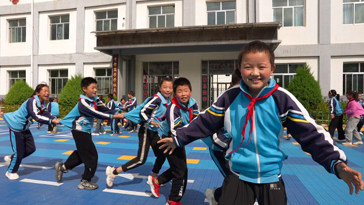 在定西市渭源縣田家河鄉元古堆村的元古堆小學,孩子們在操場上做“老鷹捉小雞”的游戲。新華每日電訊記者郭剛攝