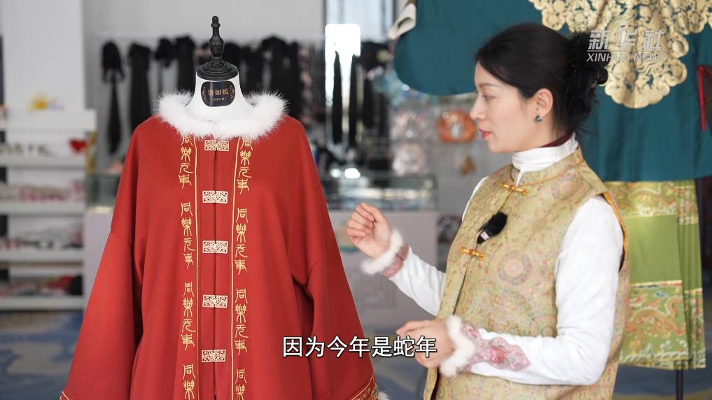 在曹縣有愛云倉漢服基地,眾多的漢服樣品中,新款蛇年拜年服格外搶眼。