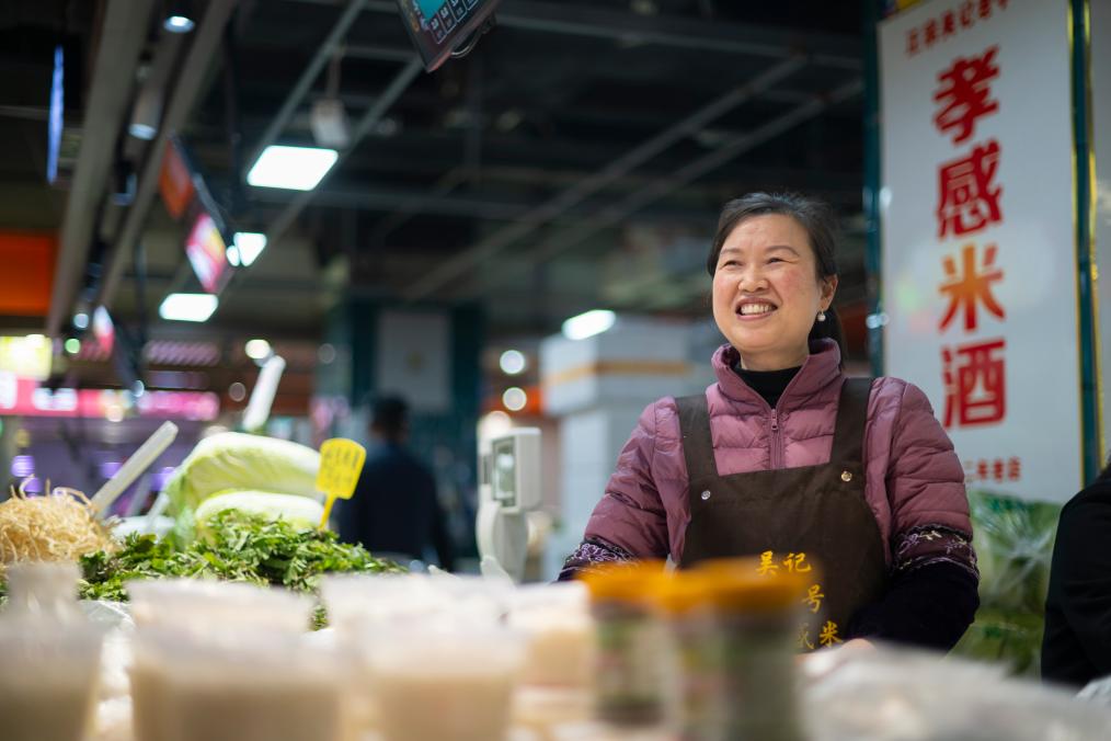 菜市場里的吳記孝感米酒攤位。新華社記者 伍志尊 攝