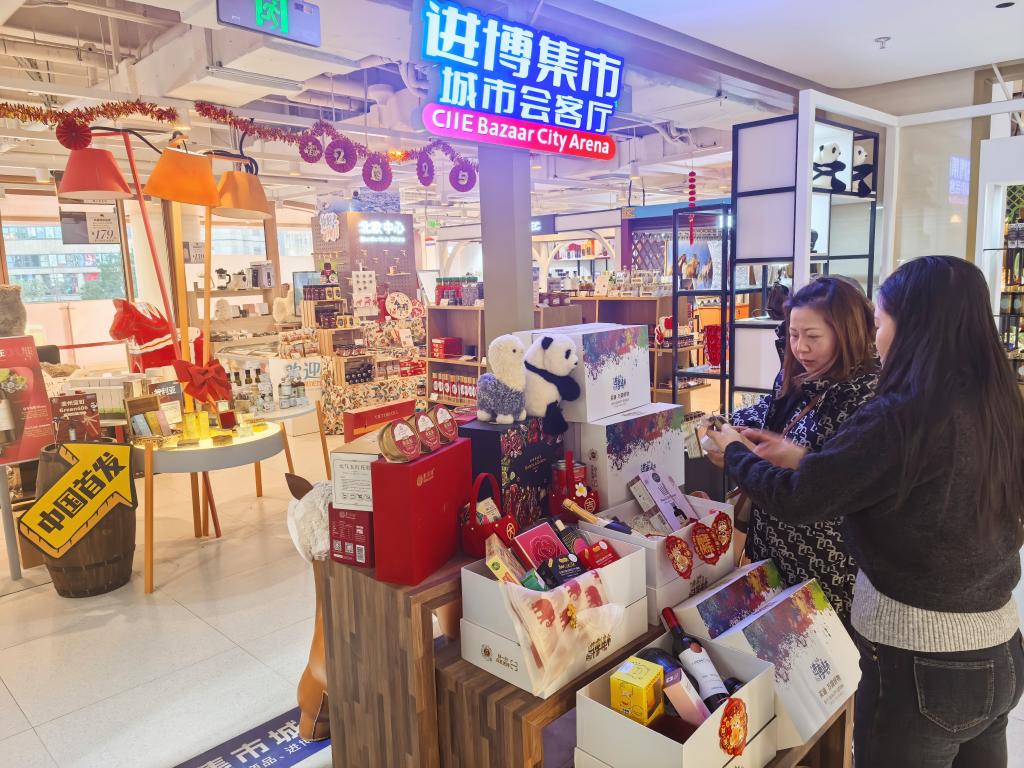 “買點‘洋年貨’嘗嘗鮮?!痹谏虾D暇┞凡叫薪稚系摹斑M博集市城市會客廳”里,不少居民正忙著采購。