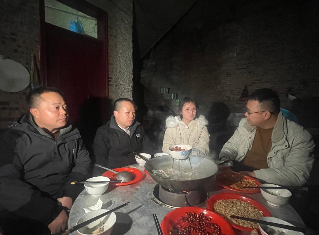 楊秀祥(左二)一行在受助學生家中了解情況。新華社記者 駱飛 攝