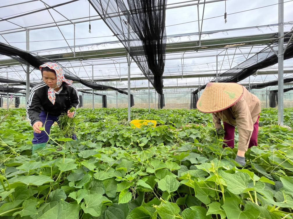 龍須菜是一種綠色野菜,種植過程中很少施用農藥、化肥?!拔覀兒推髽I進行訂單農業合作,春節前后大量上市?!泵d村駐村第一書記云天海說,龍須菜契合健康飲食需求,在冬季的北方市場備受青睞,每斤賣到16元。