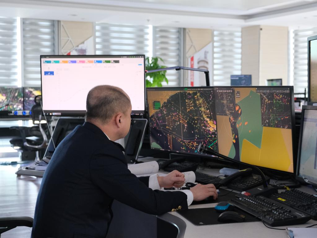 洋山VTS值班員在工作中。新華社記者 周心怡 攝